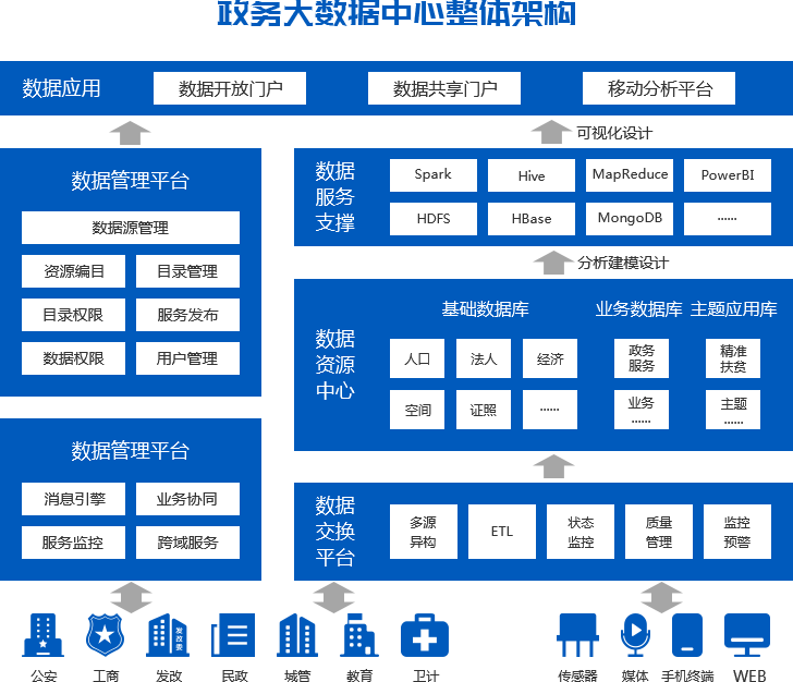 此外,数据资源层实现各部门数据采集交换,可为各部门提供更广泛的信息共享支持,数据信息从各部门整合接入,也为政府和接入部门提供共享服务,最后数据通过数据层实现共享交换,同时避免对各部门生产库造成影响。