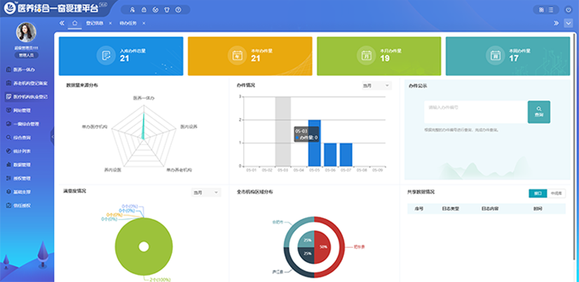 对设立医养结合机构涉及到民政局、卫健委的事项办理进行统一整合,统筹推进各级系统开发与数据库建设、网络互联等各项工作,确保各级联动、协调配合、相互衔接,建成统一的医养结合机构“一窗”办理基础平台。