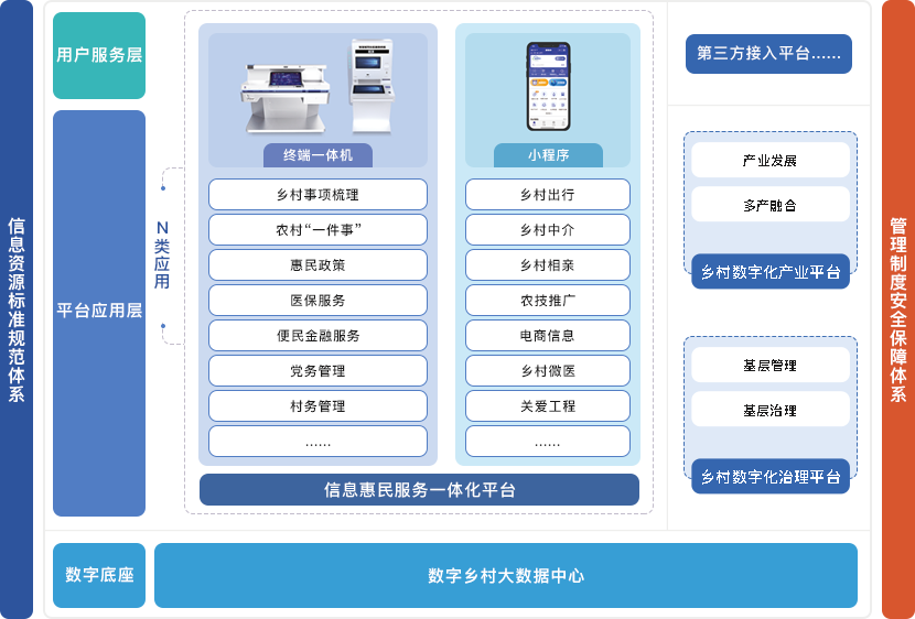 通过建设便民服务中心、便民服务站以及与金融机构相结合的服务点,主要将涉及到将农林牧渔生产管理、惠民补贴、就业创业、医疗保障、帮困服务、农机推广、乡村出行、乡村相亲等乡村重点服务事项优先纳入到信息便民惠民服务一体化平台,以实现“小事不出村、大事不出镇”的便民惠民服务愿景。