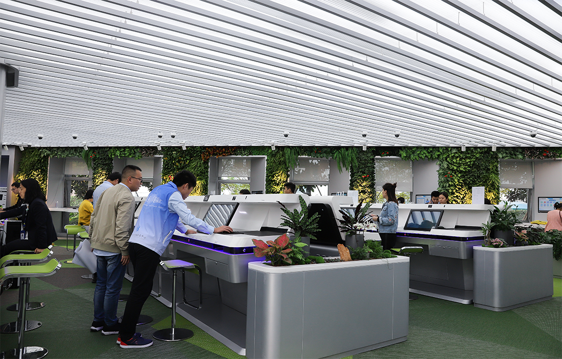 24小时自助服务大厅,共配备24台智能政务服务工作台(工作台分A、B两款,该厅为A款)。
