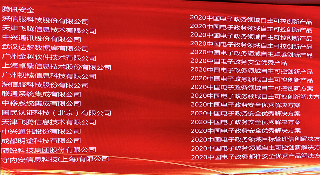 “中国电子政务领域自主可控创新”奖项的获奖单位参与大会。