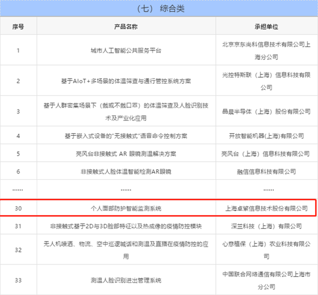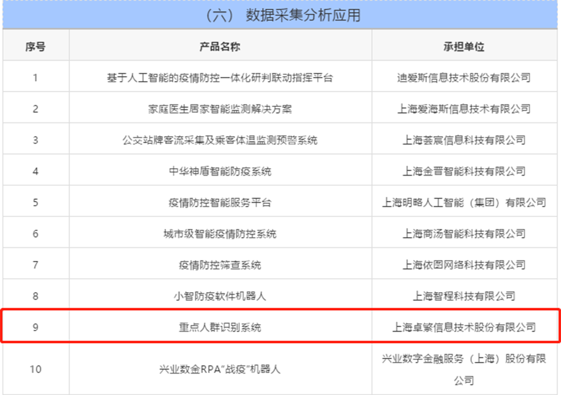 通过项目征集、供需对接、审核筛选等工作,最终有118家企业共130个产品入选征集名单。卓繁信息共有2项产品入选,其中“重点人群识别系统”入选数据采集分析应