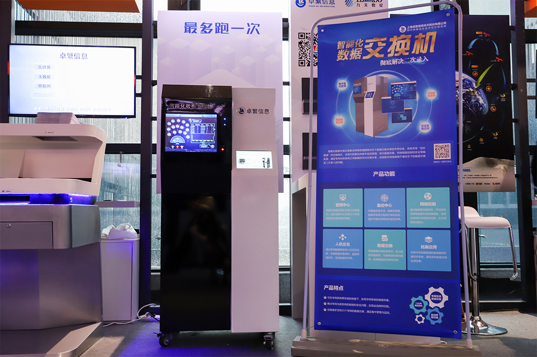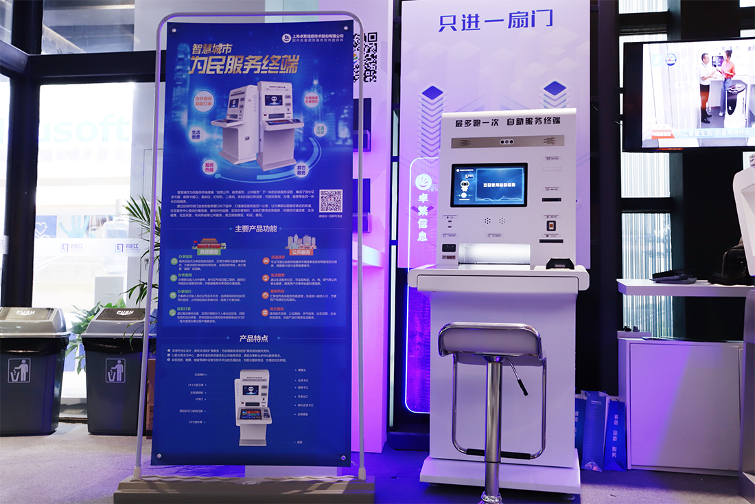 在此次博览会上, 卓繁信息携人工智能先进技术及产品参展,主要包括:自助办理工作台、智慧城市为民服务终端、智能化数据交换机。